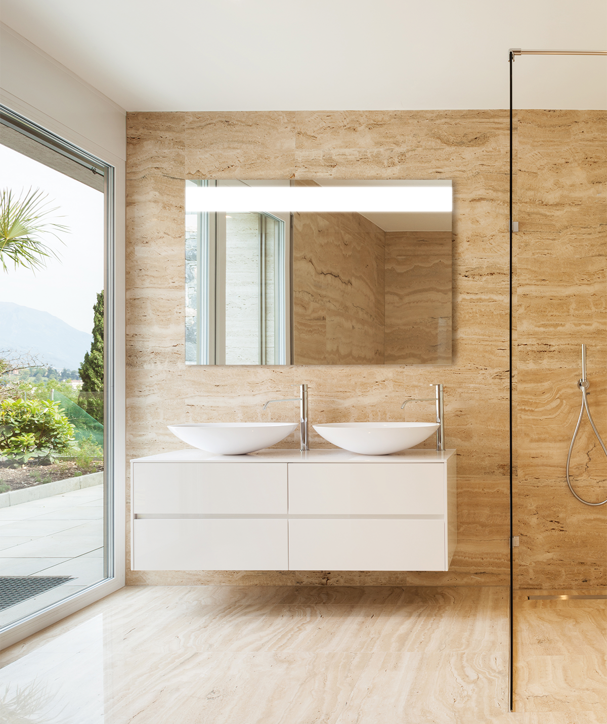 Licht -Wenn es um unser Wohlbefinden geht ist kaum ein anderer äußerer Faktor so entscheidend wie das richtige Licht. Die passende Lichtfarbe und -intensität beeinflusst unsere Stimmung und setzt uns und unser Umfeld erst richtig in Szene. Wir verwenden für unsere Sanitärspiegel ausschließlich hochwertige Leuchtmittel. Unsere LED-Technologie ermöglicht eine energieeffiziente und im höchsten Maße ausgewogene Ausleuchtung für jeden Moment. Unser Emotion-Light-System bietet Ihnen die Möglichkeit, unterschiedliche Farbspektren des Lichts zu benutzen: Von kaltem „Arbeits-Licht“ über neutrales Tageslicht bis hin zu warmweißem Ambiente-Licht. Bestimmen Sie mit unseren Sensoren selbst, welche Lichtfarbe und Helligkeit Sie gerade benötigen. Ob frontale Strahlung oder dezente Armaturenbeleuchtung